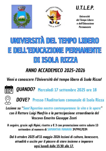 SEDE LEZIONI: AUDITORIUM, VICINO SEDE COMUNALE DI ISOLA RIZZA